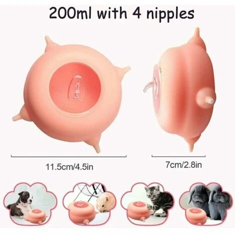 ALIMENTAZIONE PER CUCCIOLI PER PIÙ CUCCIOLI: L’alimentatore per cuccioli può interpretare appieno la natura dei cuccioli di suzione indipendente, suzione libera, piuttosto che soffocare, sovralimentare o dimenticare di nutrire manualmente uno alla volta. MATERIALE SILICONE SICURO: L’alimentatore per gattini è realizzato in silicone alimentare, che è sicuro, morbido, flessibile, resistente alle alte temperature, durevole e facile da pulire. Adatto per liquidi come latte e acqua. Il ciuccio imitazione a forma di seno è progettato per adattarsi alle abitudini alimentari della maggior parte dei neonati allattati al seno o dei piccoli gatti canini. Coprire il coperchio può aiutare a ridurre la pressione dell’aria e impedire la fuoriuscita del latte. Capacità 200 ml, 3 o 4 tettarelle, adatto a più cuccioli. FACILE DA PULIRE: il materiale in silicone è lavabile e facile da pulire. Si consiglia di pulire regolarmente i capezzoli intasati di latte, 1-2 volte a settimana, con acqua bollente. COME USARE: Inserisci la tettarella del biberon nella bocca del bambino. Se assaggia il latte, succhierà gradualmente. In caso contrario, prova 2-3 volte con pazienza. Dopo aver acquisito familiarità con l’erogatore della vescica, succhierà da solo.