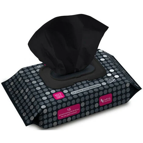 SALVIETTE AL CARBONE ATTIVO Salviette detergenti in tessuto nero con fibre 100% biodegradabili, appositamente studiate per l’igiene e la cura di cani, gatti e cuccioli. Imbevute di una lozione conte …