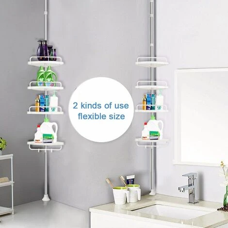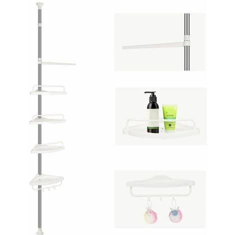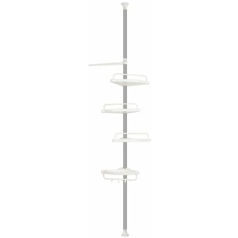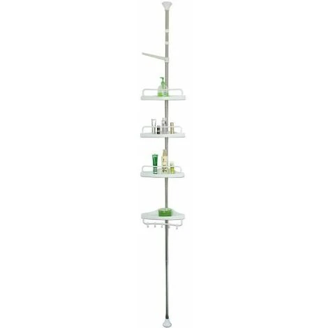 Mensola doccia angolare telescopica in acciaio inox / polipropilene con 4 ripiani bianchi