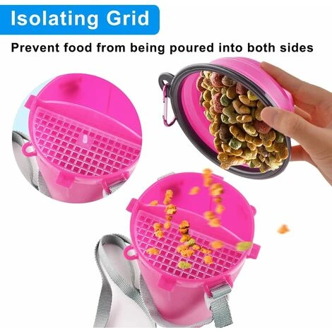 Design a doppio uso: progettato con due camere nella bottiglia d’acqua per cani 2 in 1 e nel contenitore per alimenti, una per il cibo secco e l’altra per l’acqua. Con due coperchi a bocca larga sulla parte superiore del tappo, è facile erogare uno spuntino o versare acqua.