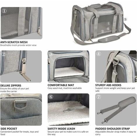 DUREVOLE – Questo trasportino per gatti è realizzato in tessuto di poliestere resistente e leggero. La rete a quattro lati non solo offrirà un viaggio sicuro e confortevole per il tuo animale domestico, ma ti consentirà anche di controllare facilmente il tuo animale domestico