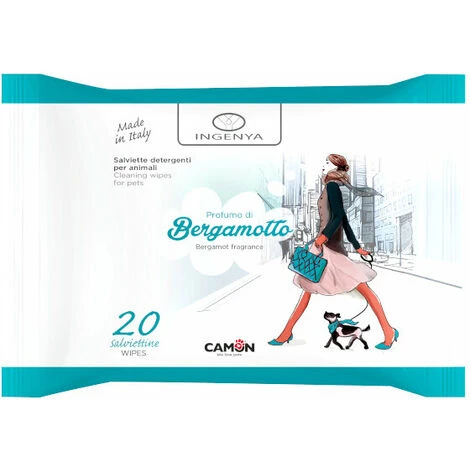 Uso: estrarre la salvietta alzando la linguetta adesiva e passarla delicatamente sull’animale. Richiudere bene la confezione.
