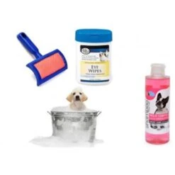 Trade Shop – Kit Pulizia Cani Shampoo Azione Addolcente Salviettine Spazzola Cardatore Pelo Corto