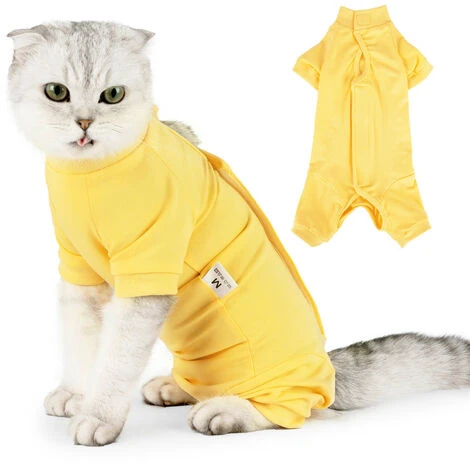 Una tuta di recupero per il tuo gatto. È dotato di tessuto modale elasticizzato, collo e arti elastici e comoda chiusura rapida. Può aiutare a proteggere le ferite dall’esterno e prevenire il leccamento. Provalo per la ferita addominale o le malattie della pelle del tuo gatto.