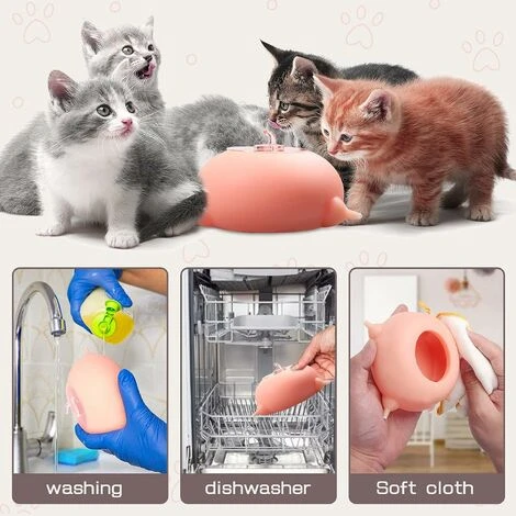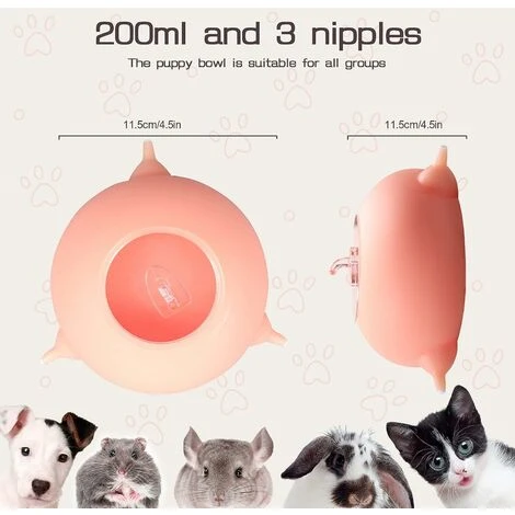 Materiali in silicone sicuri: I capezzoli della mangiatoia per cuccioli adottano il materiale in silicone alimentare, morbido, flessibile, resistente alle alte temperature e durevole, facile da pulire.