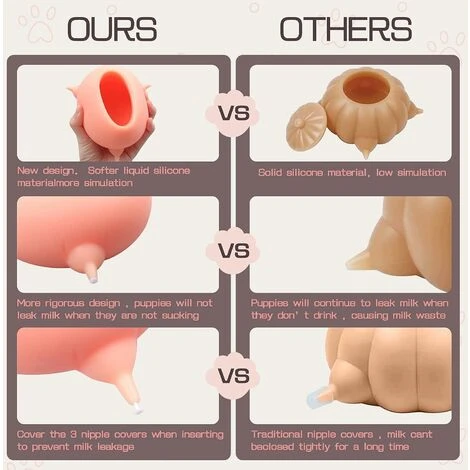 Design scientifico: imitazione della forma del seno, capacità di 200 ml, dimensioni moderate del capezzolo adatte alla maggior parte degli animali domestici e coprire il nostro coperchio possono aiutare a ridurre la pressione dell’aria, a rallentare la portata in caso di soffocamento, la copertura del capezzolo può proteggere il latte dalla caduta se gli altri bambini non bevono.