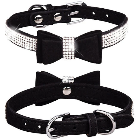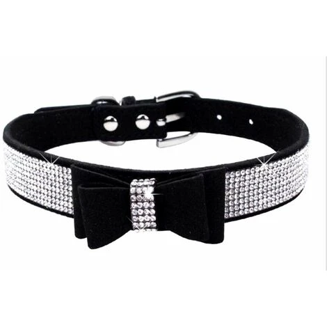 Collare per cani con strass di cristallo, fibbia con strass, 5 occhielli regolabili< /p>