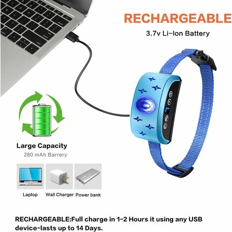 【Modalità regolabile】: il collare di addestramento per cani ha 3 modalità, è possibile impostare 7 livelli di vibrazione. Tutte queste modalità impediscono efficacemente ai cani di abbaiare senza danneggiarli. Puoi scegliere il modo più adatto per addestrare il tuo cane. Questo collare per cani che abbaia può essere caricato tramite USB. Una carica completa richiede da 1 a 1,5 ore e può essere utilizzata continuamente per circa 14 giorni quando è completamente carica.