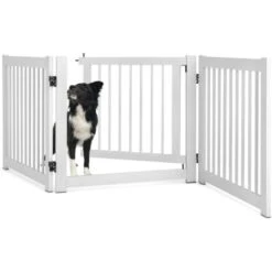- Lunga durata e uso sicuro: Il cancello per cani in legno è vernificiato bene per resistere all’umidità, prolungando così la durata. Tra l’altro, la distanza adeguata tra ogni pannello e griglia per non bloccare le zampe degli animali domestici, dunque, si può usare con sicurezza.