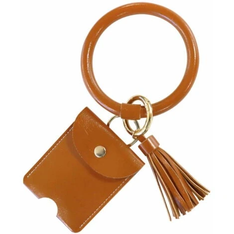 Porta sacchetti con elegante braccialetto in finta pelle (diametro 8 cm), portachiavi rimovibile con gancio in metallo.