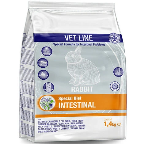 Cunipic Vet Line Intestinal for Rabbits è una formula specifica per conigli con problemi intestinali come diarrea, infiammazione intestinale, maldigestion, malassorbimento, tiflite, ileus, convalesce …