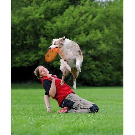Dog Disc Trixie è un simpatico frisbee per cani, realizzato in plastica flessibile, morbida ma robusta. Approvato ed ideale per tornei AWI e UFO grazie alle sue ottime caratteristiche aerodinamiche. Il frisbee è testato, a prova di morso e non si scheggia, inoltre, è stato ideato insieme ad una campionessa di Disc Dogging, Karin Actun. Dog Disc Trixie ci aiuta ad addestrare il nostro amico a quattro zampe in agilità, resistenza e velocità, infine è disponibile nelle seguenti dimensioni: ø 19 cm e ø 23 cm, colori assortiti. Inclusi: libretto con esercizi e consigli per un ottimo addestramento!