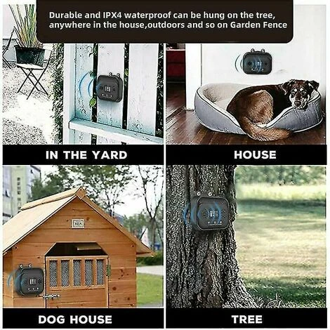 Design unico: questo controller antiabbaio ad ultrasuoni è dotato di una mini forma ben progettata, può essere appeso a un albero, a una parete interna, all’esterno o a una recinzione posta per impedire ai cani di abbaiare (nel raggio di azione); Tre pulsanti per il funzionamento, incluso un pulsante di arresto, un pulsante automatico e 3 pulsanti di livello.