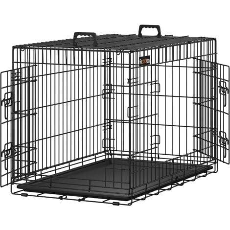Chiavistello a Forma di LEntrambe le porte sono dotate di 2 chiavistelli che impediscono al cane di scappare dalla gabbia da solo. Puoi lasciarlo solo con una sensazione di sicurezza anche per periodi di tempo più lunghi. | Robusta Struttura in Filo di FerroLa gabbia è costituita da griglie di robusto filo di ferro, che ti permette di vedere facilmente cosa sta facendo il tuo cucciolo. La superficie verniciata a polvere significa che la ruggine non ha scampo. | PieghevoleQuando non viene utilizzato, è sufficiente ripiegare la gabbia per risparmiare spazio. Le 2 maniglie per il trasporto facilitano il sollevamento e il trasporto del prodotto da e verso la macchina. |
