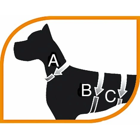 - SCEGLI LA GIUSTA TAGLIA: per scegliere il modello adatto di imbracatura cane, misurate il cane come indicato nell’immagine. Aggiungete 2-3 cm alla misurazione rilevata, in modo che l’animale abbia libertà di movimento e si senta a proprio agio