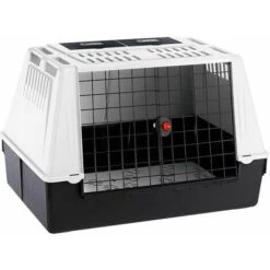 Due vani porta oggetti sulla parte superiore. Griglie di ventilazione e porta scorrevole bidirezionale. Tappetino drenante in ABS e due maniglie. Possibilità di inserire un separatore interno per trasportare due cani (escluso).