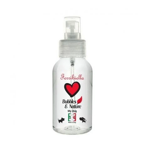 Il profumo per cani Ferribiella My Dog non crea irritazioni cutanee perchè senza alcool, e in più contiene estratti naturali, i quali conferiscono alla profumazione una formula ultra-delicata, che rende brillante il pelo del tuo cane. Grazie all’erogatore spray, bastano poche spruzzate su collo e coda, evitando muso e occhi, per garantire una profumazione a lunga durata.