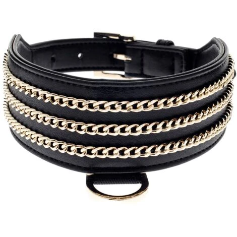 Collare levriero in pelle sintetica e tripla catena Le Dangerouge per cani