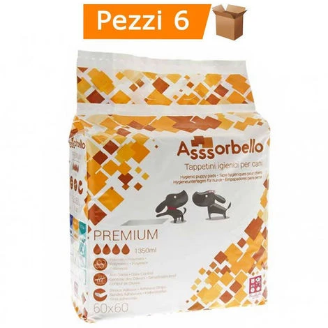 Multipack Assorbello Tappetini igienici Premium per Cani 6 confezioni x 30 pz (60×60 cm)