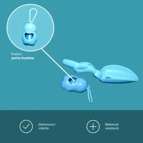 1 x Paletta a Forbice Per Cani Animali Gatti Raccogli Escrementi Colore Blu Pet + 45 Sacchetti
