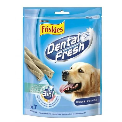Alimento complementare per cani adulti. Dental Fresh 3 in 1 e’ uno snack gustoso da masticare tutti i giorni. con una speciale forma e combinazione di ingredienti per supportare l’igiene orale e dentale del tuo cane.
