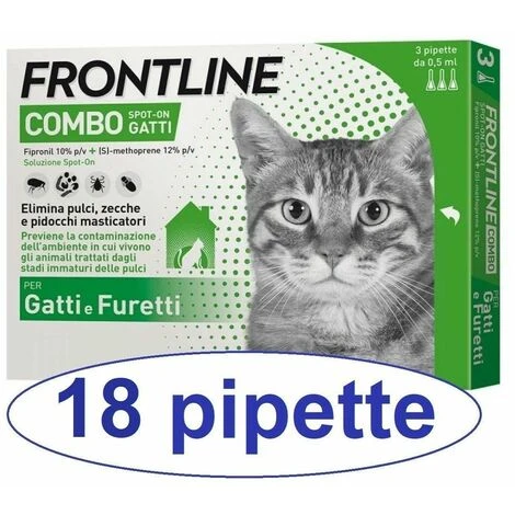 .FRONTLINE® COMBO Spot-on Gatti è una soluzione insetticida e acaricida in forma spot-on per gatti e furetti. Grazie alla combinazione dei suoi due principi attivi, Fipronil e (S)-methoprene, è attivo su zecche, pidocchi, pulci adulte, uova e larve di p