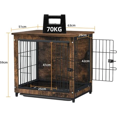BingoPaw Gabbia per Cani in Legno Metallo, Casetta per Cani da Interno Gabbia per cani gatti Taglia Piccolo Arredamento alla Moda Tavolino per Gabbia per Cani con vassoio, Marrone Vintage 63x51x59cm