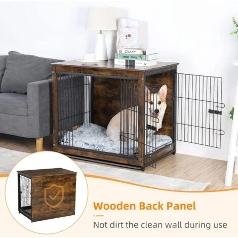 | Custodia per cani dal design staccabile, è possibile trasformarla in un box per cani per attività di gioco se si rimuove il coperchio superiore con gli strumenti. Oppure si trasforma in una bella cuccia per il riposo quando si rimuove la porta. | Il design a doppia porta con una davanti e l’altra sul lato permette un facile accesso per passare o inserire il vostro animale domestico o mangime. Due forti chiusure a molla per mantenere la porta chiusa e sicura. | Realizzata in legno di alta qualità, materiale di lunga durata, leggero e soprattutto impermeabile e isolante. |