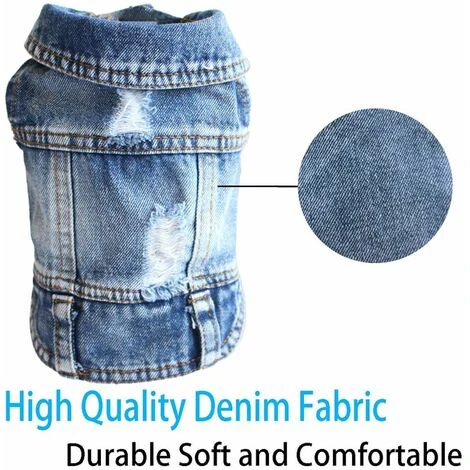 1. 【Materiale giacca jeans per cani】Tessuto denim, abbigliamento per cani resistente, morbido e confortevole, i tuoi animali adoreranno i jeans per cani!