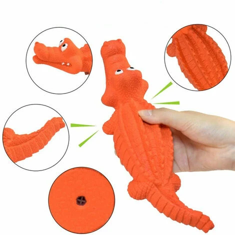 【Migliora l’igiene dentale】 – Lunghezza 10,4 pollici, spessore 2,4 pollici, forma unica a coccodrillo, giocattolo con squittio di cane rosso arancio brillante, per ore di masticazione, gioco e addestramento di animali domestici, la forma irregolare aiuta a massaggiare e pulire i denti del cane , mantenere la salute orale del cane.