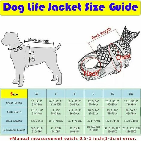 SI PREGA DI SCEGLIERE UNA TAGLIA APPROPRIATA: Il giubbotto di salvataggio è adatto per cani di piccola taglia, cani di taglia media e cani di grossa taglia. Ha 7 taglie, dalla XXS alla XXL. Si prega di misurare la circonferenza del torace e del collo del cane, in particolare la circonferenza del torace. Se la misura è vicina al massimo, seleziona la taglia successiva più grande per una vestibilità più comoda sul tuo cane.