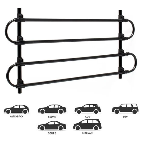 Il ferro conferisce alla struttura una maggiore stabilità e la forma arrotondata riduce il rischio di lesioni. La griglia può essere montata tra il sedile e il vano portabagagli senza dover praticare fori. Ha una grandezza di 40 cm e può essere regolata individualmente nella larghezza di 83-145 cm grazie alle pratiche alette. In questo modo, si adatta a quasi tutti i modelli d‘auto.