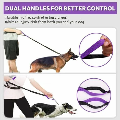{Bungee ammortizzante con 2 maniglie} Perfetto grado di flessibilità, riduce lo stress da tirare e tirare, assorbe i bruschi cambi di direzione del tuo cane. La lunghezza del guinzaglio quando l’elastico è rilassato, fornendo spazio sufficiente affinché il tuo cane possa correre liberamente davanti a te o accanto a te. Usa rapidamente la maniglia vicino al fianco per riportare il cane in carreggiata. La maniglia del collare consente un controllo più diretto e un controllo del traffico sul tuo cane.