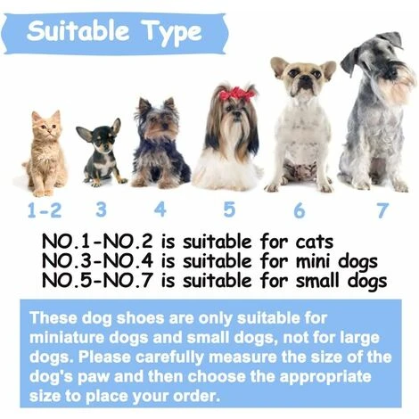 ????【Scegli la taglia giusta】 5: 5×4,2 cm (LxL); Metodo: posiziona le zampe del tuo animale su carta; segnare la larghezza delle gambe, comprese le dita dei piedi e le unghie; misurare tutte le gambe e utilizzare la misura più ampia; Si prega di fare riferimento alla tabella delle taglie e scegliere la taglia giusta.