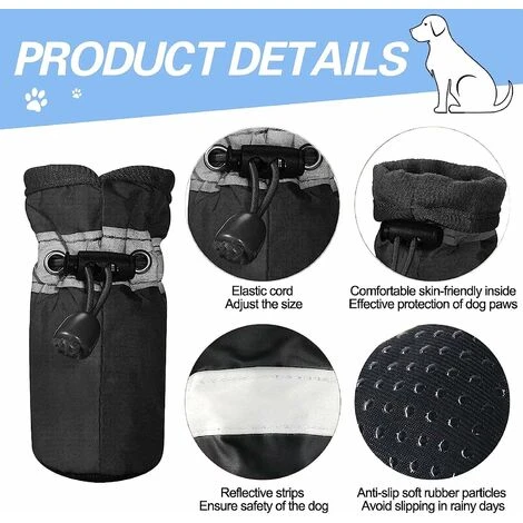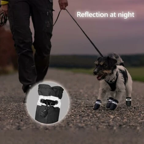 ????【Elastico rifrangente e regolabile】 Questi calzini per cani da neve sono facili da indossare. mettere e a rimuovere e rimanere sulla zampa del cane. Cinghie elastiche e riflettenti di alta qualità sono progettati per garantire una vestibilità comoda e sicura durante le passeggiate notturne.