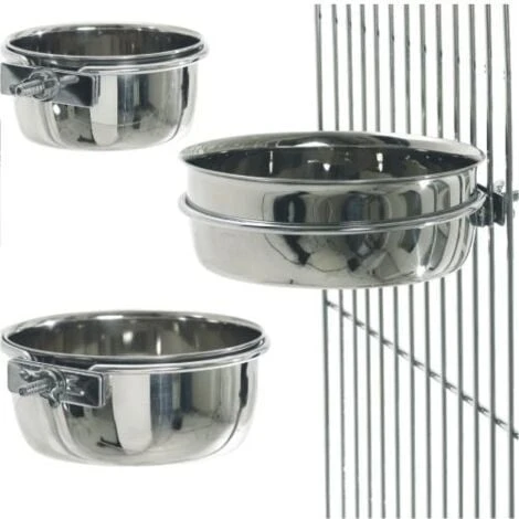 Mangia e abbeveratoio in acciaio inox con supporto per gabbie o canili.