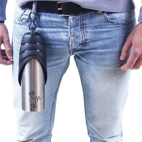Questa bottiglia è perfecta per trascorrere una giornata fuori con il vostro animale domestico, per portarlo in viaggio, o anche per la passeggiata quotidiana nelle giornate estive. La bottiglia è in acciaio inox e il tappo è in plastica.