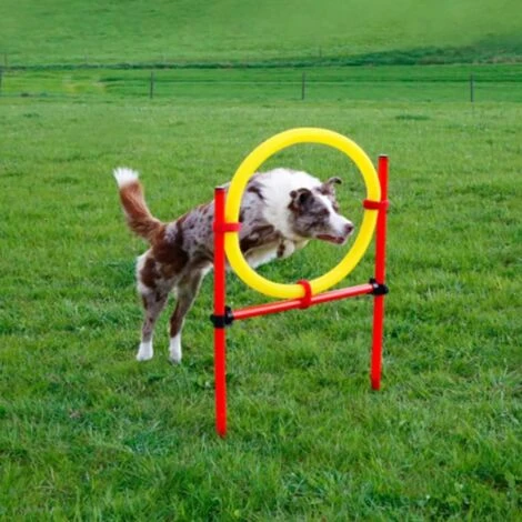 Il set è composto da tre ostacoli: un salto nel cerchio, un ostacolo e pali per slalom. Il set di allenamento per agility è facile da assemblare e può essere riposto in modo compatto per salvare spazio.