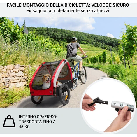 CORSA O PASSEGGIATA 2 IN 1: attacca il passeggino per cani alla tua bici per lunghe avventure o trasformalo in un rimorchio. Questo trasportino per cani convertibile supporta cuccioli di taglia media fino a 45 kg come bulldog, beagle e border collie.
