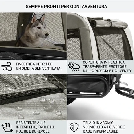 CORSA O PASSEGGIATA 2 IN 1: attacca il passeggino per cani alla tua bici per lunghe avventure o trasformalo in un rimorchio. Questo trasportino per cani convertibile supporta cuccioli di taglia media fino a 40 kg come bulldog, beagle e border collie.