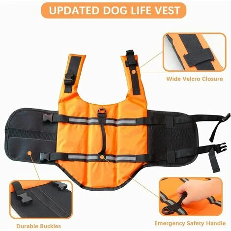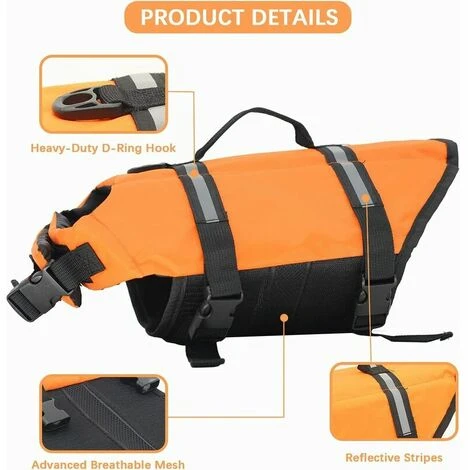 【Design ergonomico】: giubbotto di salvataggio sul retro, ha una comoda maniglia, facile da far uscire il cane dall’acqua. Anello a D in nylon per trasportare e proteggere il tuo cane quando necessario. Il materiale in nylon antistrappo è impermeabile e si asciuga rapidamente. La morbida imbottitura offre un comfort particolarmente confortevole per il tuo cane.