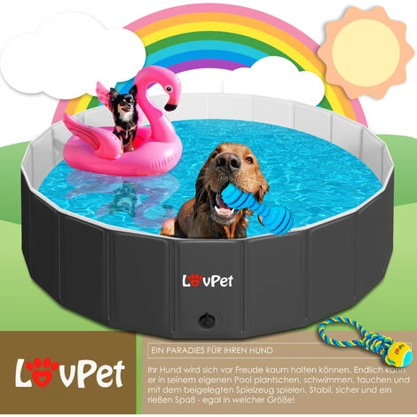 Piscina per cani LOVPET per un divertimento ideale per il bagno, giocattoli inclusi, sicura e stabile, sistema pieghevole, disponibile in 4 misure – adatta anche ai bambini