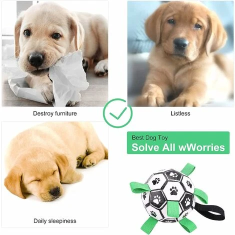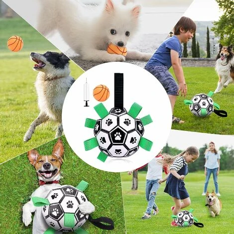 【Aggiornamento interattivo del giocattolo per cani】: Il pallone da calcio con linguette in nylon cucite non solo crea un rimbalzo irregolare che i cani amano inseguire, ma facilita anche il recupero, il lancio, il traino e il recupero dei cani. Le zampe del cane sono stampate sulla palla giocattolo per attirare l’attenzione dei cani. C’è un cinturino più lungo per tenere la palla, il che lo rende un ottimo giocattolo interattivo per cani per addestrare i tuoi cani.