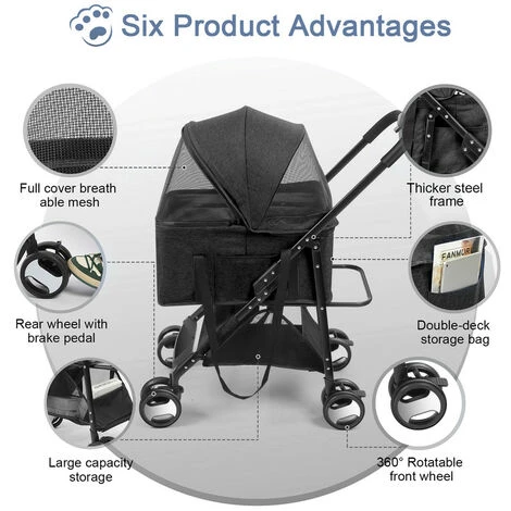 【Progettato per un compagno costante】Realizzato con tessuto resistente all’acqua e agli strappi facile da pulire con ruote anteriori girevoli e grandi ruote posteriori con freno. Adatto per cani e gatti di piccola e media taglia fino a 44 libbre.