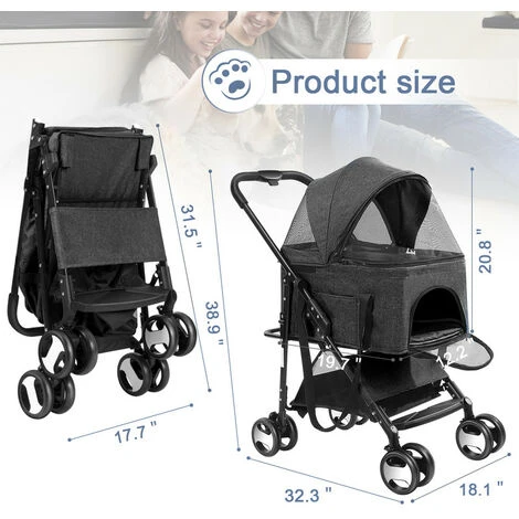 【Multifunzionale con trasportino portatile】Progettato con una culla staccabile che funge da seggiolino per auto quando sei fuori con il tuo animale domestico e pronto per essere portato con te o trasportato sul passeggino senza disturbare il tuo animale domestico quando arriva a destinazione.