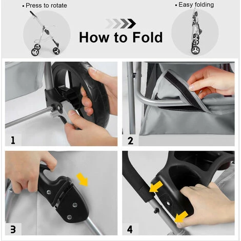 【Funzione di piegatura con un pulsante】Questo carrello è dotato di una funzione di piegatura con un pulsante, non sono necessari strumenti, il passeggino per animali domestici si piega rapidamente per riporlo comodamente ovunque, a casa o in vacanza. Significa che è facile portare dall’auto a casa nel tuo luogo di vacanza preferito.