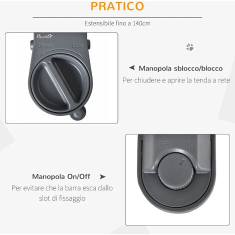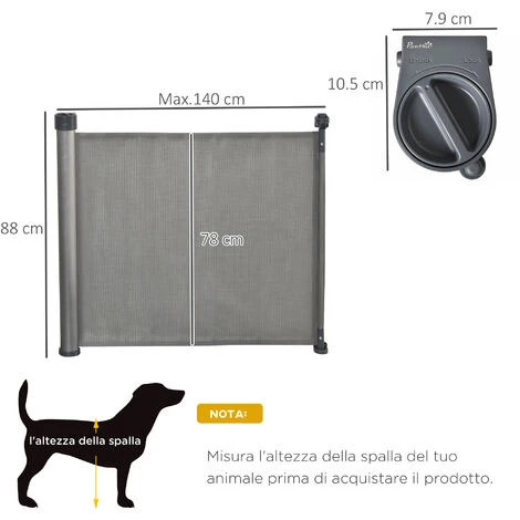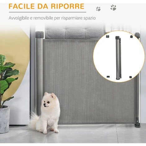 Crea uno spazio sicuro per i tuoi animali con il cancelletto per cani PawHut! La tendina è estensibile fino a 140cm, per adattarsi a ogni spazio della tua casa. Facile da bloccare e sbloccare, il cancellino di sicurezza è semplice da usare e perfetto per tenere i cani lontani da scale, stanze, ecc. Grazie al design avvolgibile occupa poco spazio e con la sua struttura in alluminio resiste all’uso.