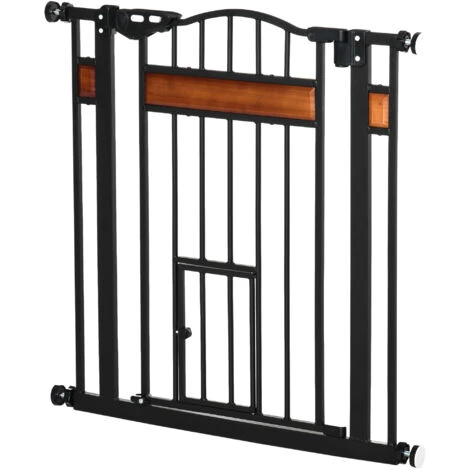 Tieni al sicuro gli animali con questo cancelletto di sicurezza PawHut. In solido acciaio per una maggiore resistenza, la sua larghezza può essere regolata tra 74cm e 80cm, per adattarsi con facilità a spazi di varie dimensioni. È facile da aprire grazie al sistema solleva e scorri, che ti permette di passare rapidamente senza che il tuo cane scappi via. Il doppio meccanismo di bloccaggio assicura che il tuo animale sia al sicuro e l’esclusiva decorazione in legno aggiunge un tocco di stile.