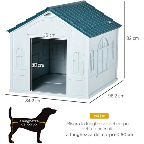 - • Superficie impermeabile e tetto inclinato per proteggere gli animali domestici
