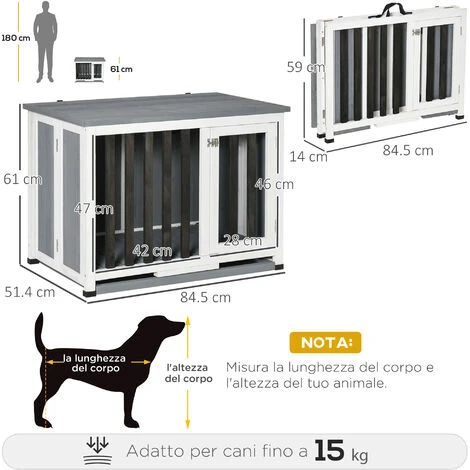 Hai bisogno di un recinto per tenere al sicuro il tuo amico a quattro zampe? Questa gabbia per cani in MDF è progettata per proteggere il tuo pelosetto e in più ha il tetto apribile e vassoio estraibile alla base. La base è rialzata rispetto al terreno, per tenere il tuo animale domestico lontano dall’umidità e per offrirgli uno ambiente confortevole in cui schiacciare un pisolino.